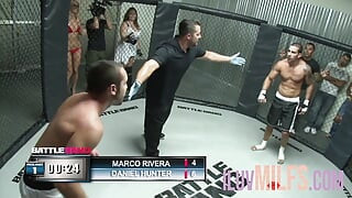 Peitudas milfs em lingerie compartilham seu pau grande em um trio